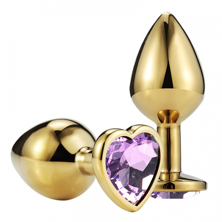 Восхитительная пробка из металла "под золото" с сиреневым кристаллом, сияющим всеми своими гранями - это, именно то, что необходимо для комфортного анального проникновения!