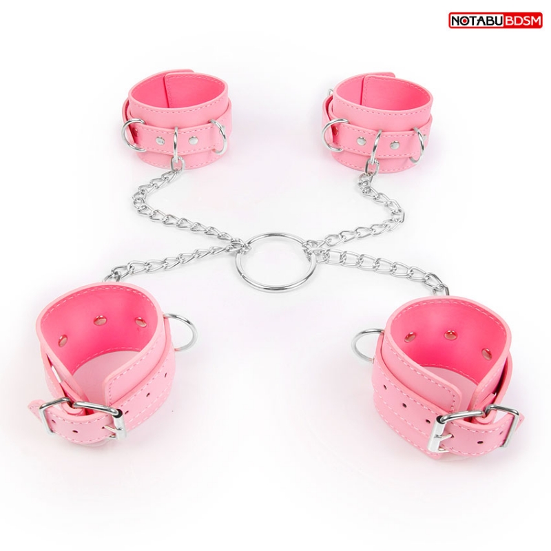 Наручники + оковы на металлических цепях "Notabu" розовые, экокожа