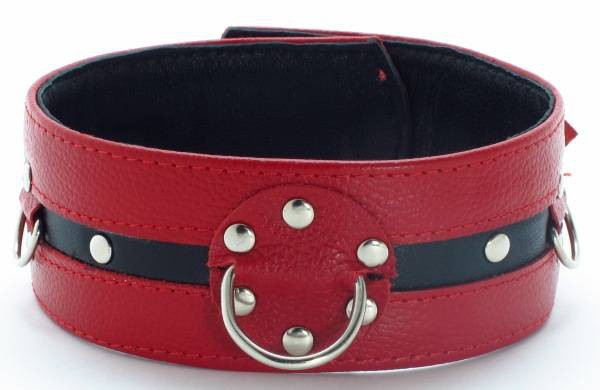 Широ­кий кожа­ный ошей­ник "BDSM-​Арсенал" в шикарном красном цвете с дизайном из черной кожи и металлических клепок превосходно подойдет для самых дерзких игр в стиле БДСМ!
