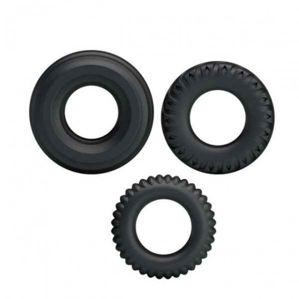 В набор "Ring" входит 3 эрекционных кольца. Все три кольца имеют различный рельеф и диаметр, что позволяет экспериментировать с ощущениями!