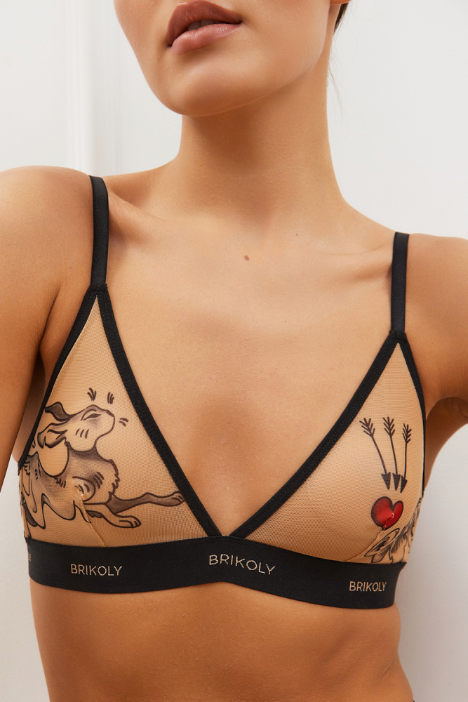 Бюстгальтер-топ "Brikoly Rabbit" микросетка с эффектом тату, 75B